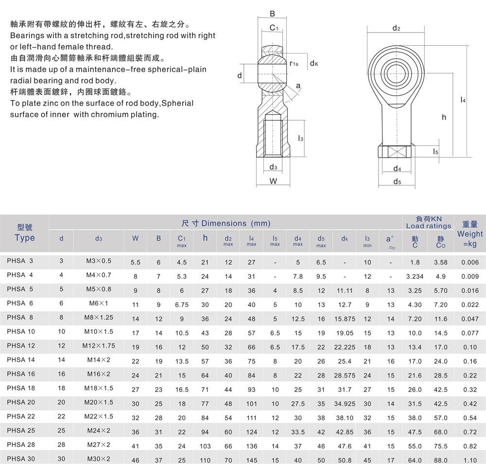 產(chǎn)品名稱:PHSA內(nèi)螺紋自潤滑桿端關節(jié)軸承